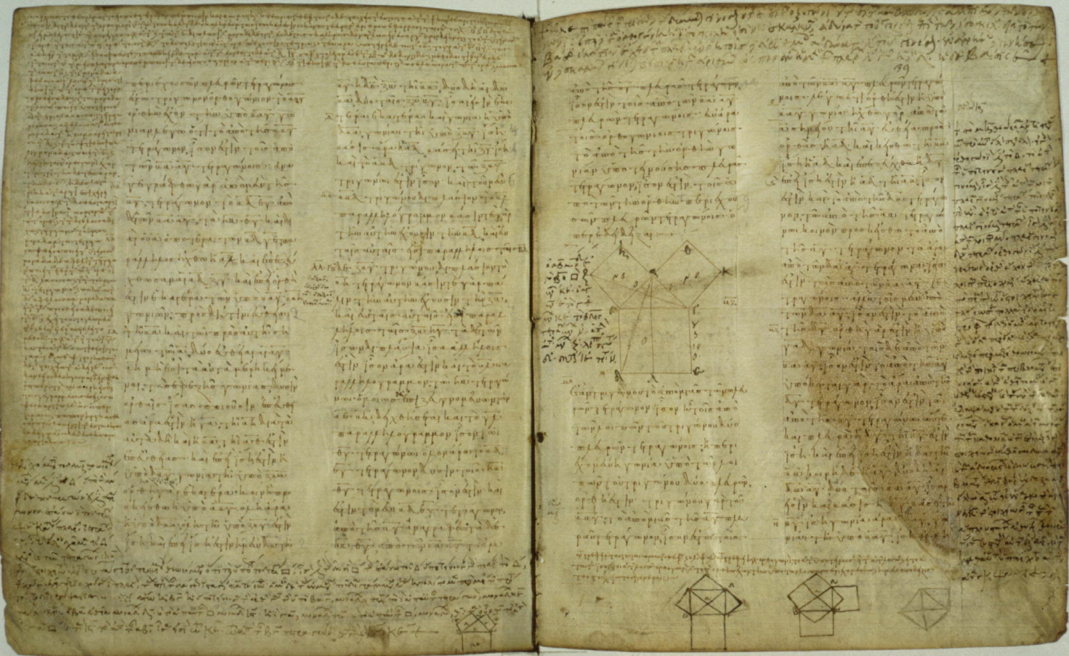 Pagină din manuscrisul „Elemente” al lui Euclid, scris în anul 300 î.Hr. Sursa: ibiblio vatican